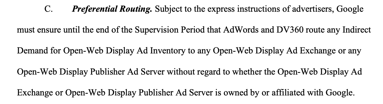 In the DOJ’s remedies, on the other hand, they address this with what they call “Preferential Routing” or the anti-SPO: