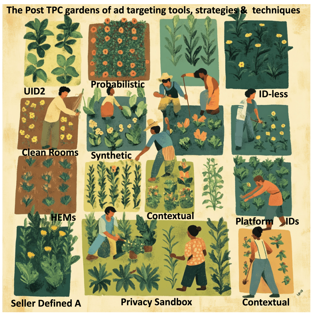 ID-Less – The IAB TL just came out with a great overview. There are some really cool solutions out there which rely on the establishment of neural networks and AI to identify patterns and make predictions regarding which sites are more likely to be visited by users that are interested in a particular product. But ID-less is a really broad category that could probably be further split up (beyond contextual and SDAs) into sub-categories. Like contextual, these may not rely on a UID for targeting, but probably would need one for measurement. Like contextual, most of these involve tradeoffs in terms of utility - but I’m pretty sure you can say that for just about all of the post-TPC techniques.